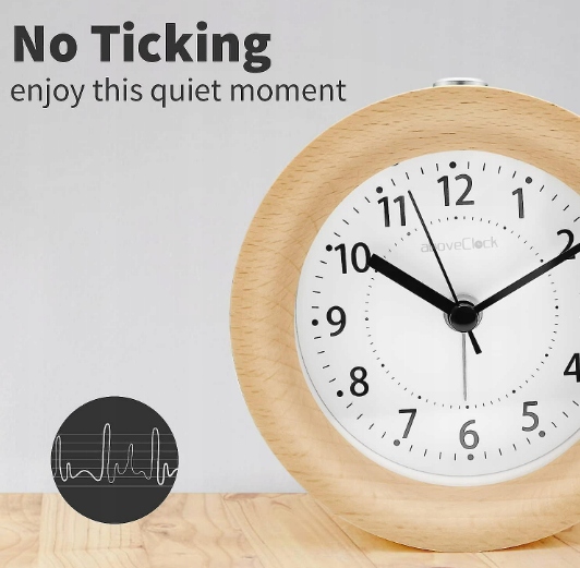 - Bez tykania – ten budzik bez tykania wykorzystuje konstrukcję ruchu skanującego o niskim poziomie decybeli, aby upewnić się, że czas jest dokładny, bez tykania, nie zakłóca spokoju lub pracy.