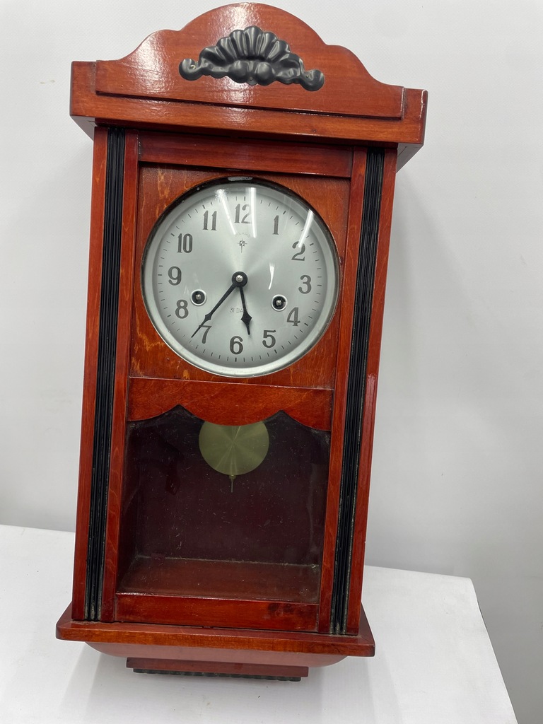 Posiadam na sprzedaż drewniany zegar naścienny z wahadłem firmy Polaris. Zegar sprawny w bardzo dobrym stanie wizualnym.