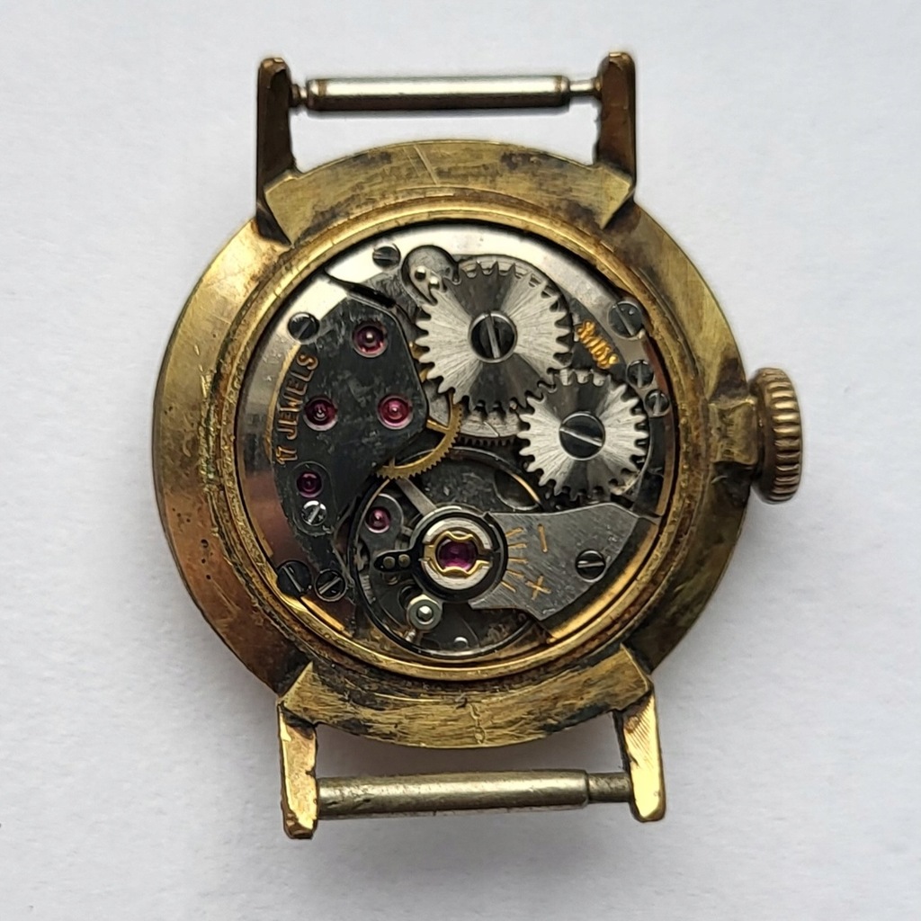 Zegarek posiada naciąg mechaniczny na 17 kamieniach.