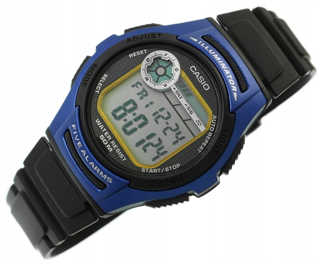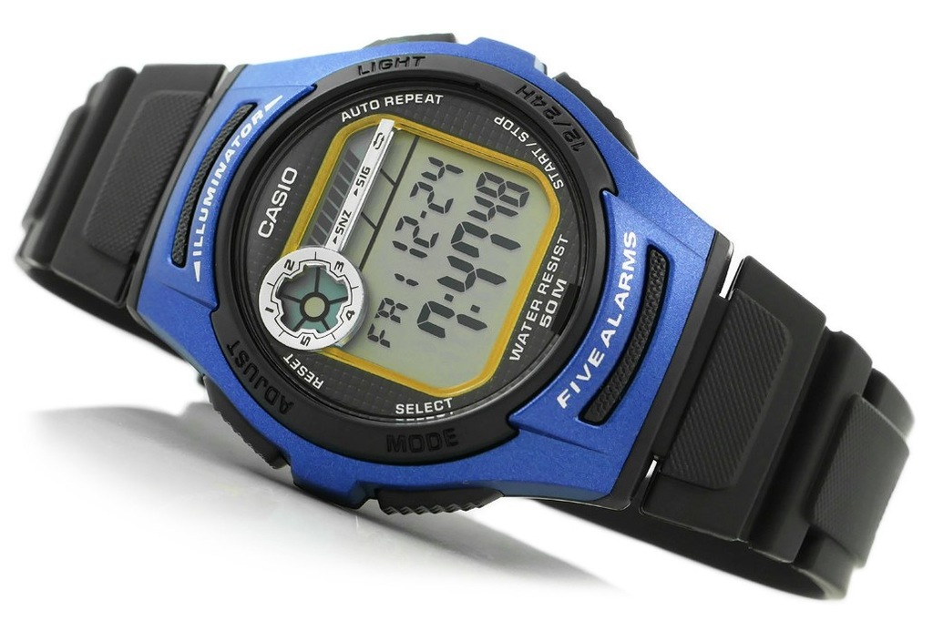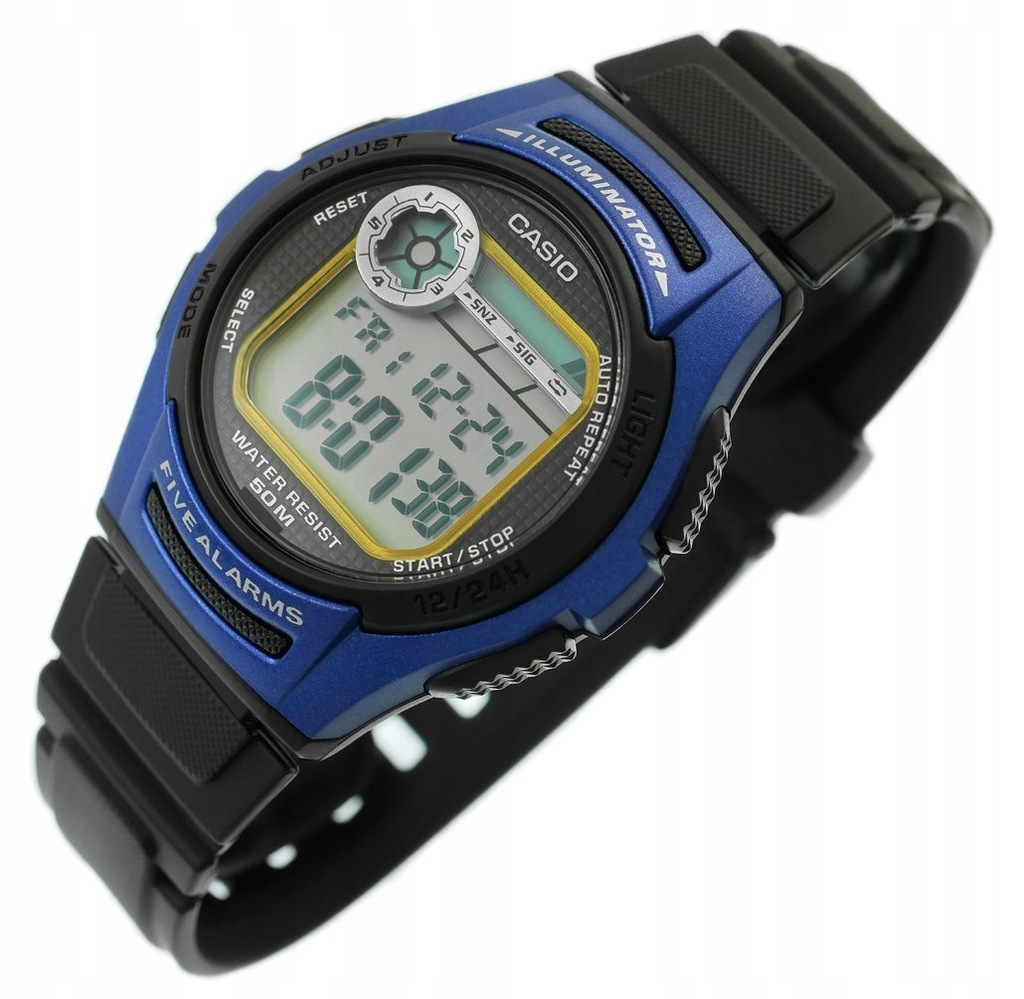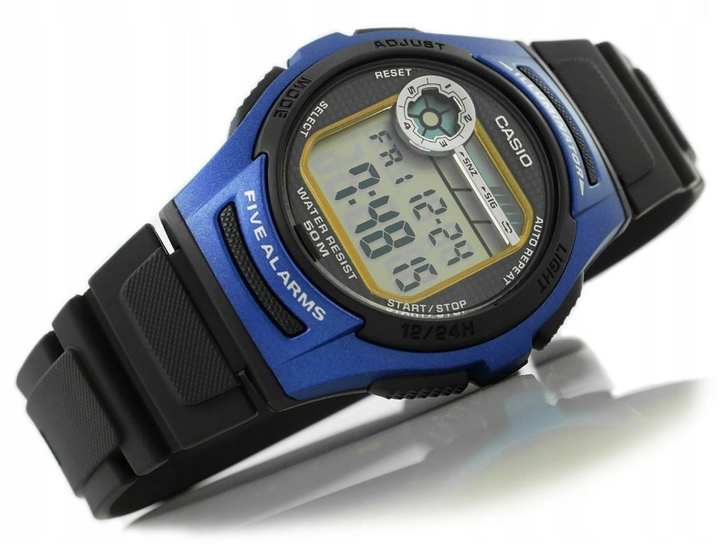 Zegarek Casio wielofunkcyjny, kwarcowa mechaniz z wyświetlaczem LCD.Stoper, Alarm, Budzik.Data. Podświetlenie - do podświetlenia tego zegarka użyto diody LED, która stonowanym i jasnym światłem wystarczająco naświetli nam tarczę. Podwójny czas T1/T2 Jednoczesny pomiar czasu w dwóch różnych strefach czasowych. Czas dobowy 12/24h. Timer 24h - zegarek wyposażony jest w funkcję liczącą czas do tyłu. Maksymalna długość pomiaru wynosi 24 godziny.