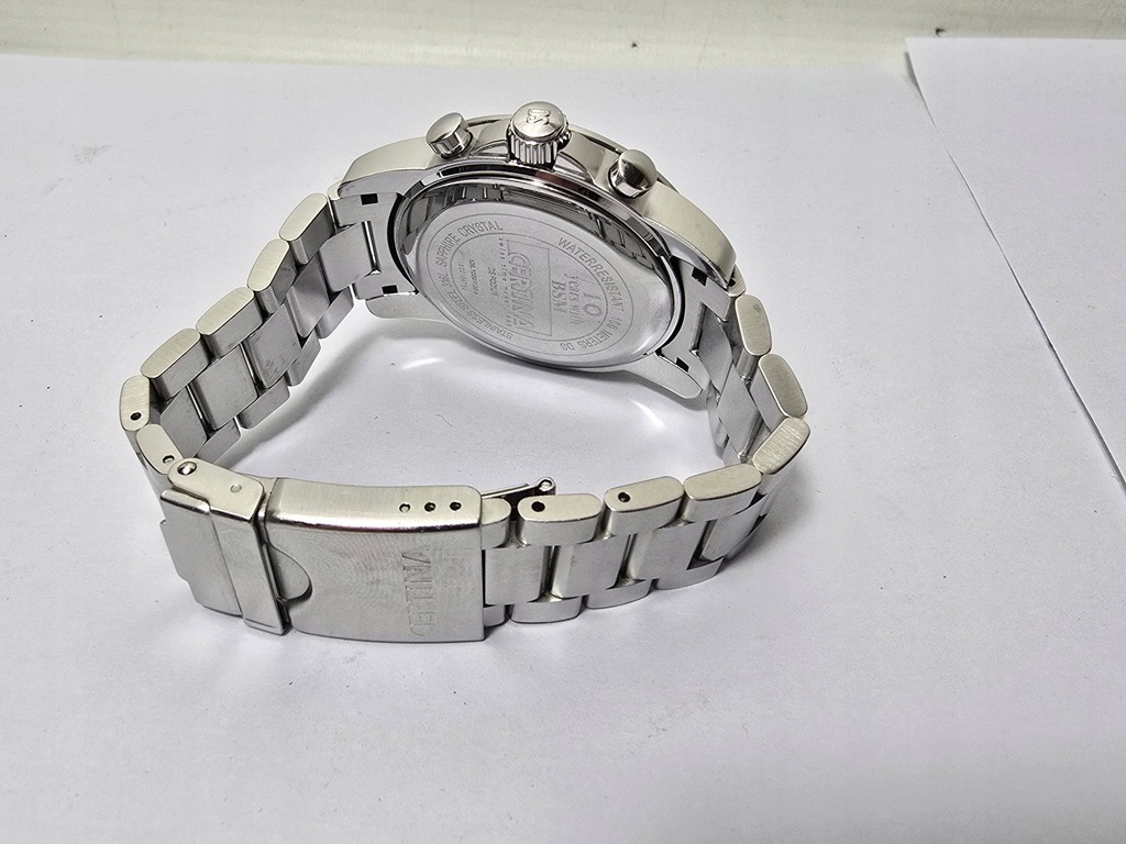 Zegarek w stanie bardzo dobrym jak na zdjęciach posiada normalne niewielkie ślady użytkowania. W pełni sprawny. Zegarek na raczej niewielki męski nadgarstek myślę że max 18cm.