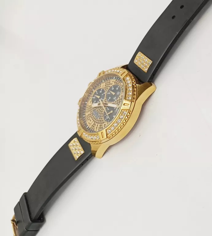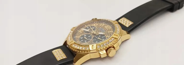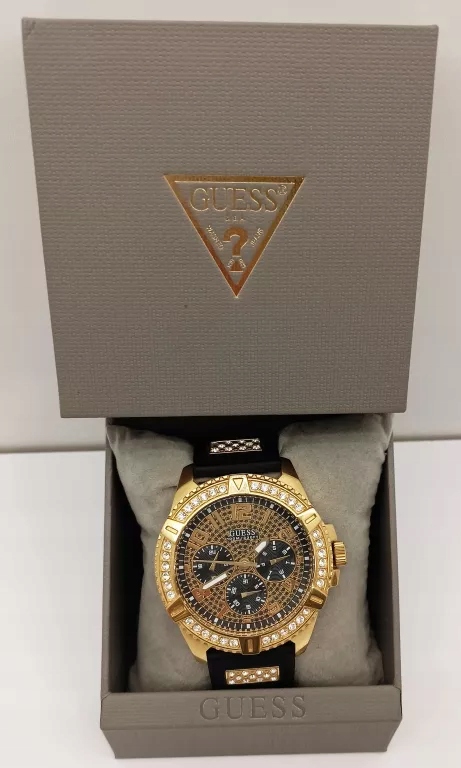 Zegarek Guess Frontier W1132G1 to dokonały wybór dla osób uwielbiających bogato zdobione dodatki. Model idealnie prezentuje się w stylizacjach eleganckich. Tarcza zegarka, a także pasek zostały utrzymane w kolorystyce klasycznej czerni. Szczególną uwagę zwracają błyszczące, drobne kryształki umieszczone na cyferblacie zegarka. Zegarek posiada funkcję datownika wskazującego dni tygodnia, miesiąca, dodatkowo posiada zakręcany dekiel, a także 24 format wyświetlania godziny.