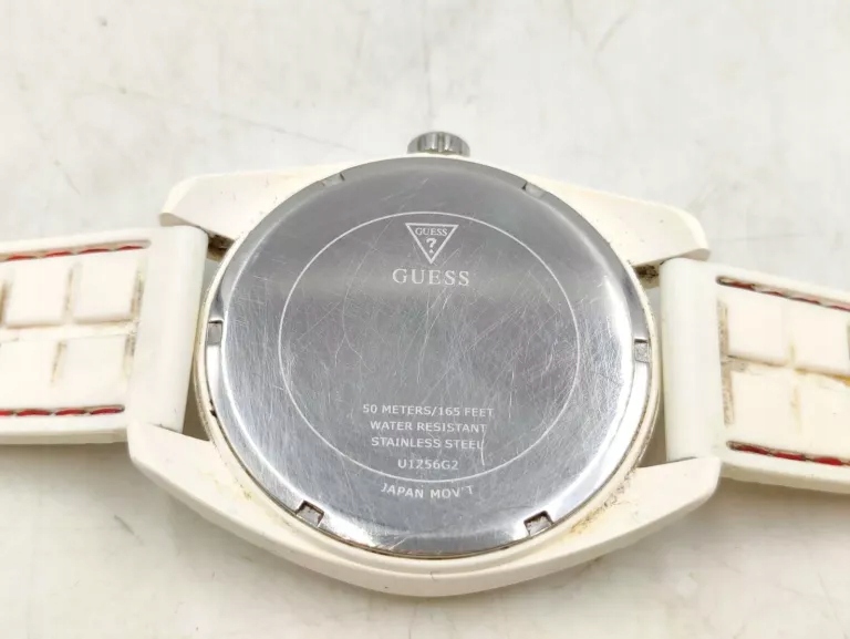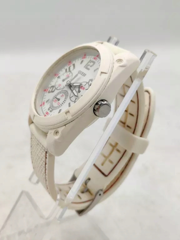 Marka: GuessOpakowanie: BrakPłeć: męskiMechanizm: KwarcowySzkiełko: MineralneMateriał koperty: TworzywoSzerokość koperty: 46 mmPasek/Bransoleta: na pasku z gumy / silikonuKolor paska/bransolety: białyKolor tarczy: jasna, biała, ecruKolor koperty: białyWodoszczelność: 5 ATM = 50 m (odporny na zachlapania)
