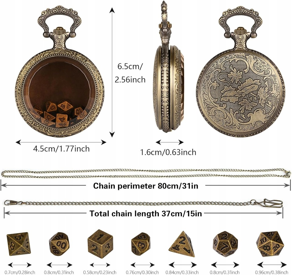 To jest tytuł oferty, w której dokonujesz zakupu: Zegarek kieszonkowy z kostkami wielościennymi DND miniaturowe