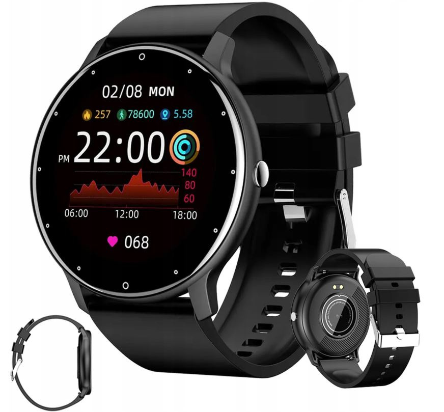 - Po zaśnięciu smartwatch automatycznie monitoruje Twój sen. Zegarek rejestruje czas głębokiego i lekkiego snu. Ponadto dostępne są funkcje takie jak prognoza pogody, timer, przypomnienie o siedzącym trybie życia, sterowanie.