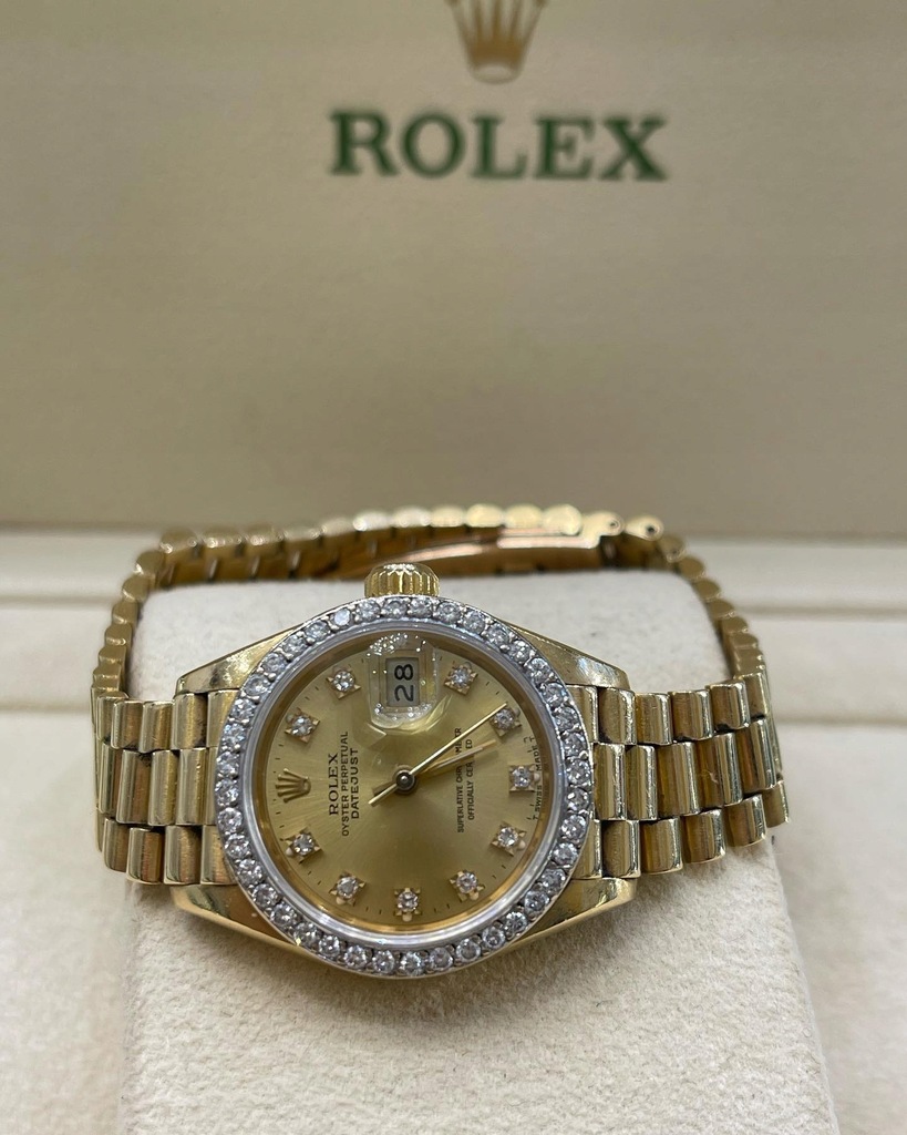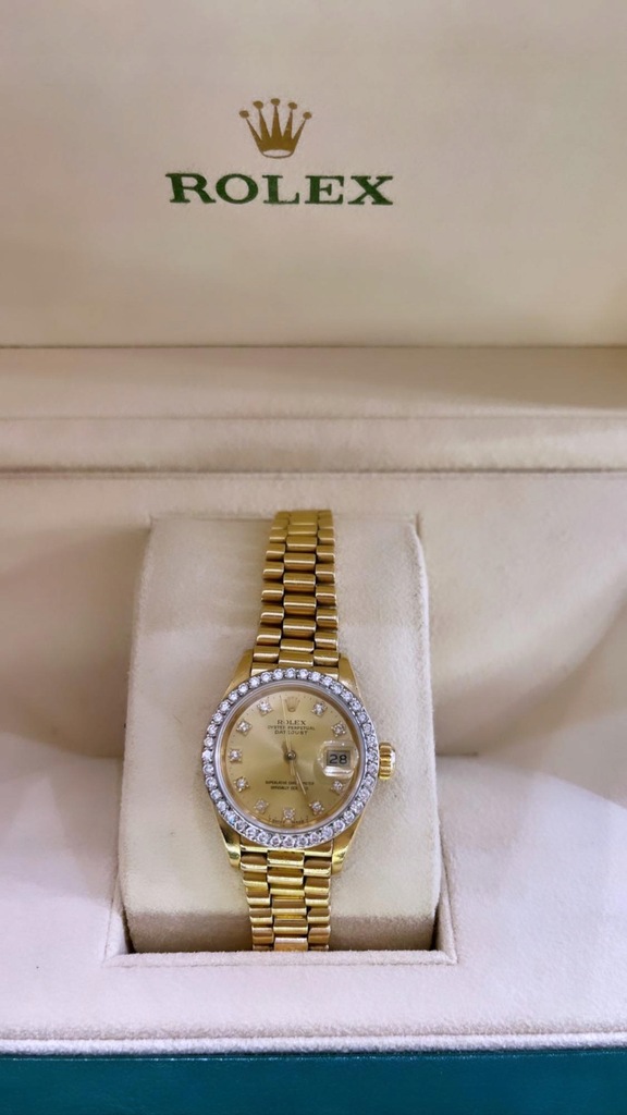 Zapraszam do zakupu zegarka oryginalnego marki Rolex Date Just z brylantami na ringu oraz tarczy.