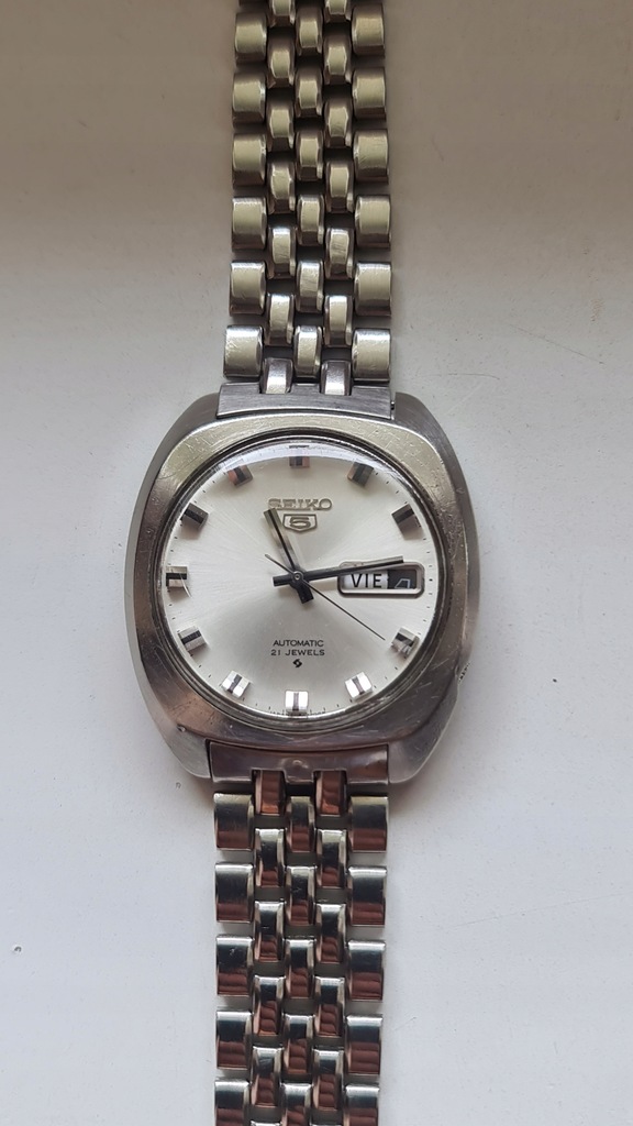 WITAM PRZEDMIOTEM AUKCJI JEST SEIKO 5 AUTOMATIC ,6119 7103 ŚREDNICA KOPERTA WYNOSI 35,8 MM NA 34,MM MECHANIZM SEIKO CAL 6119C NA 21 JEWELS , NA SZKLE WIDOCZNE PĘKNIĘCIE.ZEGAREK SPRAWNY IPUNKTUALNY KUPUJESZ CO WIDZISZ .ZAPRASZAM