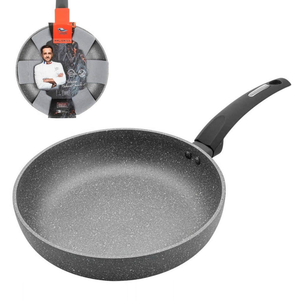 - uchwyt jest bezpieczny i ułatwia przenoszenie patelni z miejsca na miejsce bez konieczności używania rękawic kuchennych,