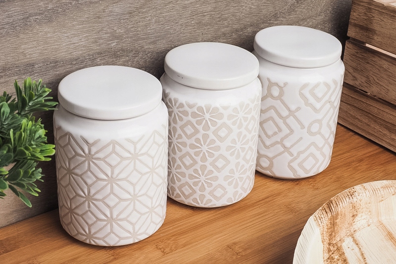 Zestaw pojemników wykonany został z wysokiej klasy ceramiki, która jest bardzo elegancka. Ponadto wyróżnia się wytrzymałością oraz ponadczasowym wyglądem.
