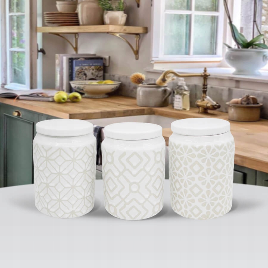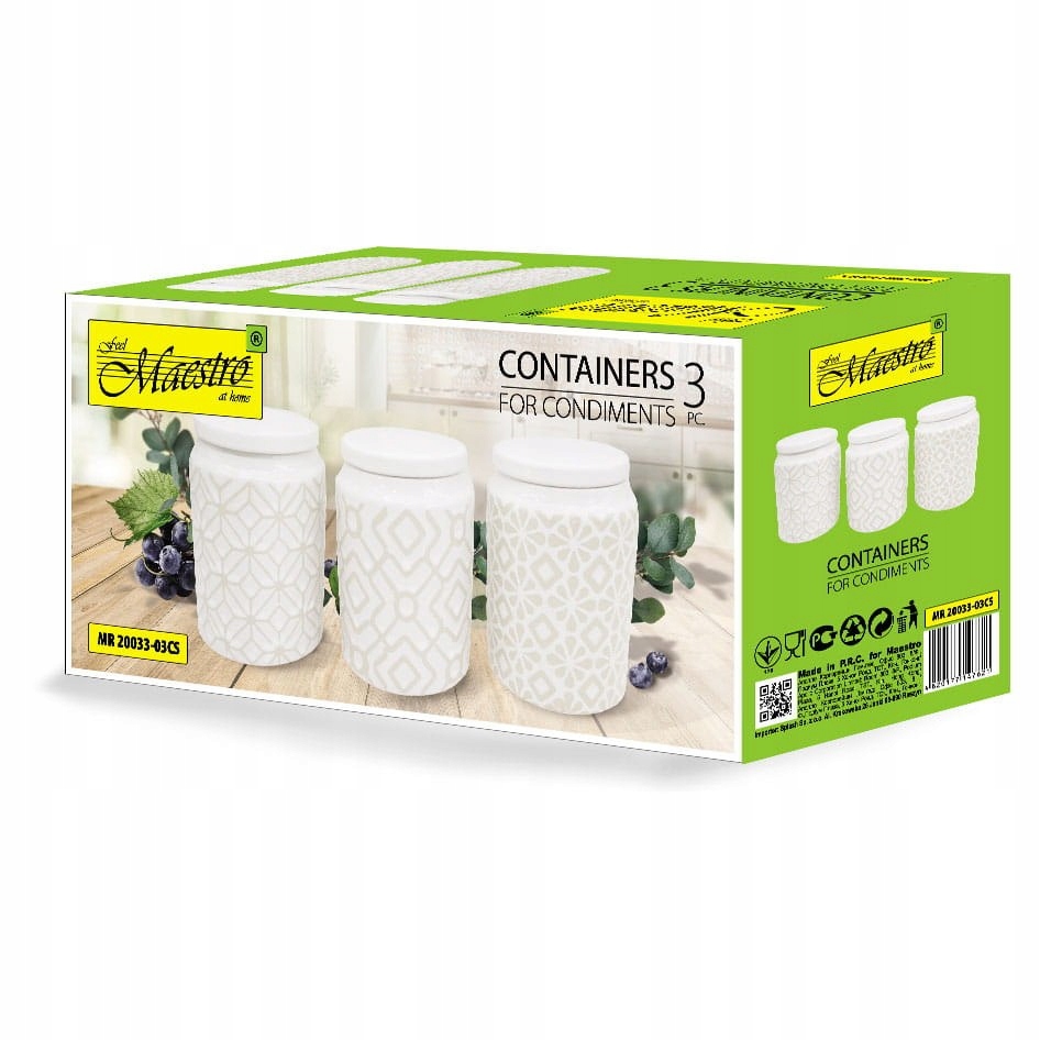 ZESTAW 3 POJEMNIKÓW CERAMICZNYCH NA KAWĘ, HERBATĘ I CUKIER MAESTRO MR-20033-03CS