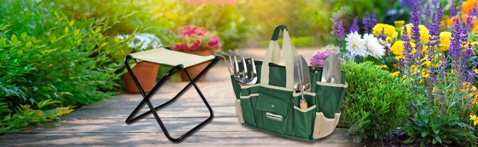 Zadbaj o swój ogród jak prawdziwy profesjonalista! Wytrzymałe narzędzia, komfortowy stołek i praktyczna torba sprawią, że każda chwila spędzona wśród zieleni będzie jeszcze przyjemniejsza. 🌱✨