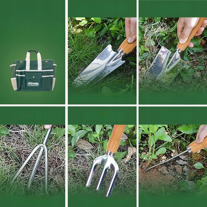 Ten 7-częściowy zestaw narzędzi ogrodniczych zapewni Ci pełną kontrolę nad każdą rabatą, doniczką i grządką. Wytrzymałe narzędzia, ergonomiczne uchwyty, praktyczna torba i składany stołek – wszystko to sprawi, że pielęgnacja roślin stanie się prawdziwą przyjemnością! 🌸🌿
