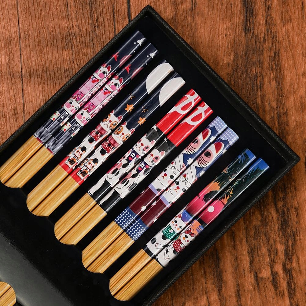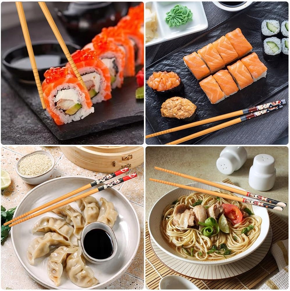 🥢🎋 Zestaw 5 par bambusowych pałeczek - eleganckie, ekologiczne i wielokrotnego użytku