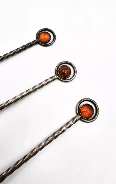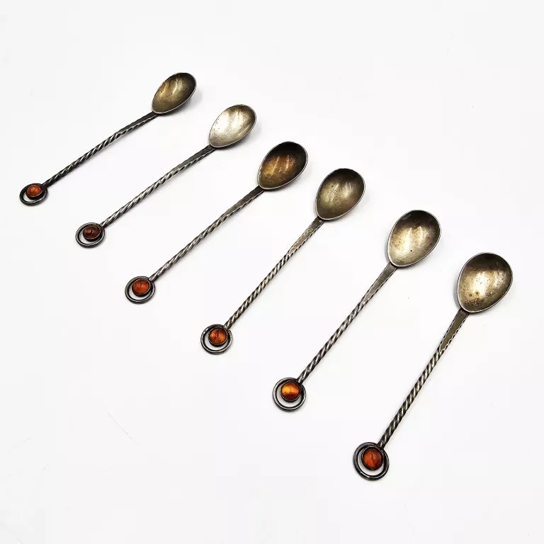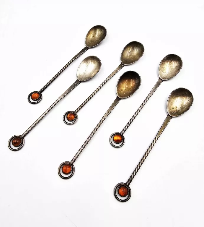 ZESTAW 6-CIU METALOWYCH ŁYŻECZEK Z BURSZTYNEM