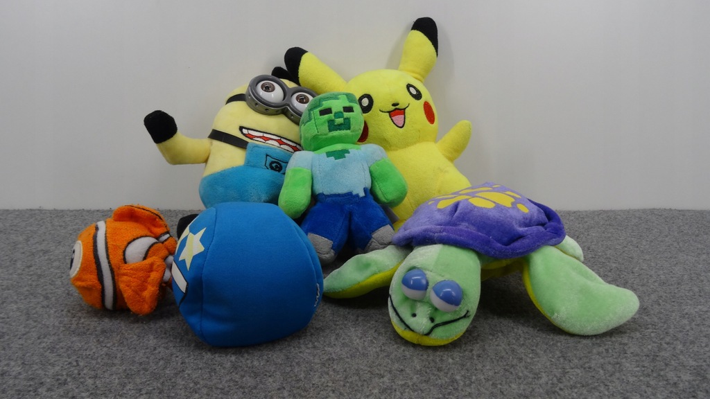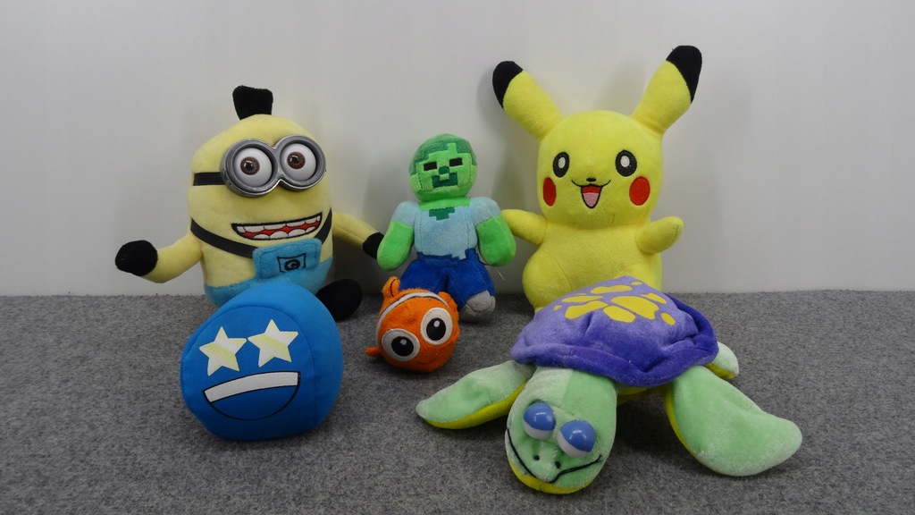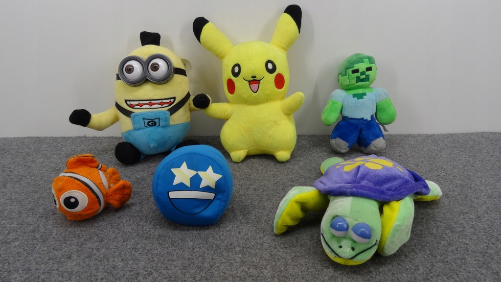 Zestaw 6 szt pluszowych maskotek: Minionek, Pokemon, Disney maskotka rybka Nemo, Minecraft, żółw.