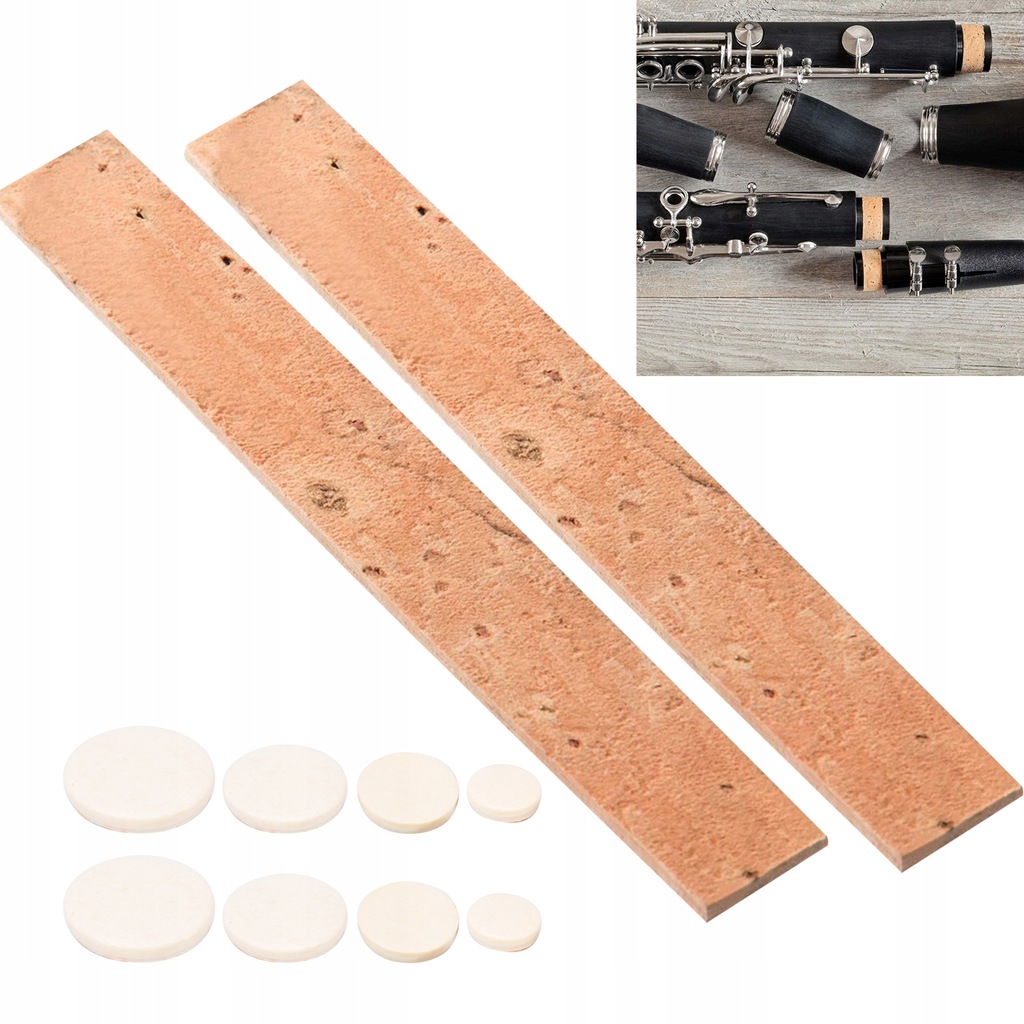 - Zawiera akcesoria: 17 podkładek pod klarnet, 10 arkuszy korkowych