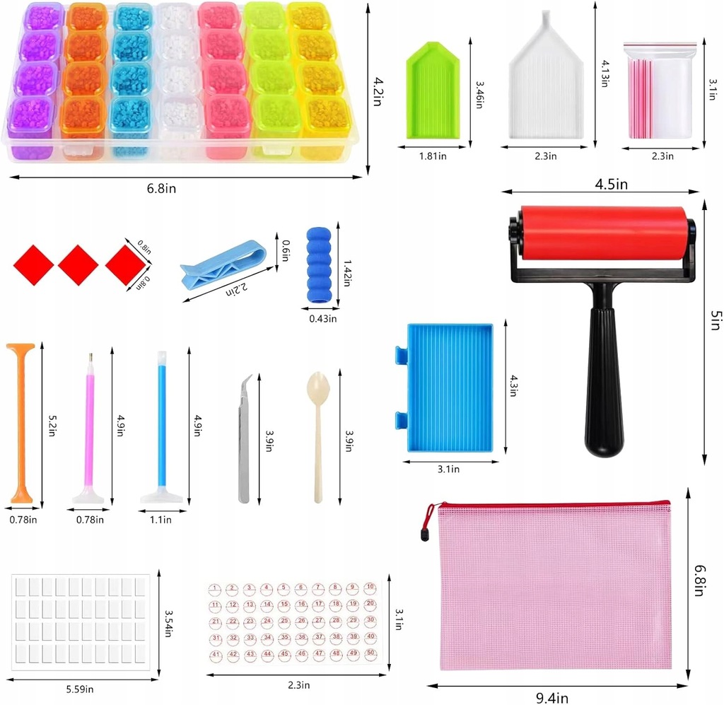 Zestaw składa się z wielu elementów, które ułatwią Tobie i Twojej rodzinie lub znajomym wspólną zabawę, a wyklejanie obrazków diamentowych stanie się wygodne i praktyczne.