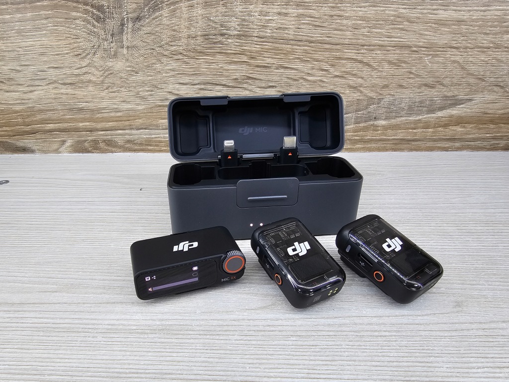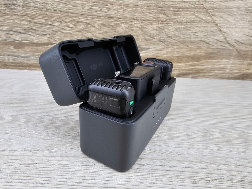 - Kompletny zestaw: Dwa nadajniki (TX), jeden odbiornik (RX) i praktyczne etui ładujące.