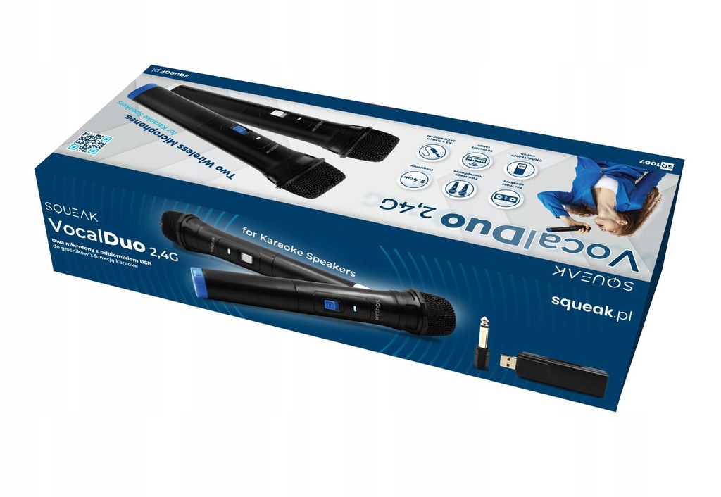 CECHY PRODUKTU Dwa bezprzewodowe mikrofony SQUEAK VocalDuo 2,4GHz USB SQ1007