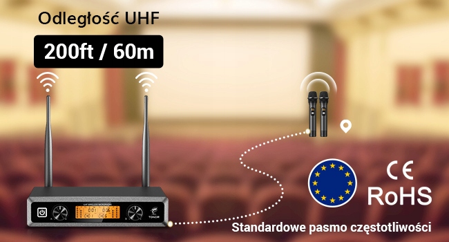 ZESTAW BEZPRZEWODOWYCH MIKROFONÓW TONOR TW820 UHF 60M