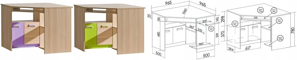 - biurko narożne 11 : 96,5cm x 78cm x 96,5cm