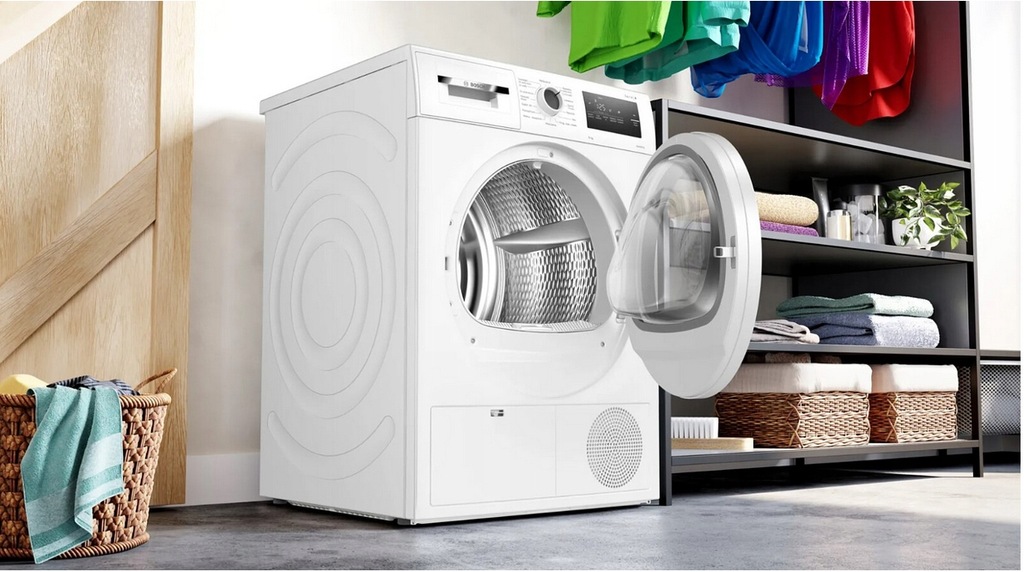 Innowacyjna technologia pompy ciepła, zastosowana w suszarkach Bosch to gwarancja delikatnego i energooszczędnego suszenia. Dzięki zastosowanym rozwiązaniom, tkaniny suszone są w niższej temperaturze w porównaniu z suszarkami konwencjonalnymi. Zastosowanie pompy ciepła umożliwiło również znaczące obniżenie poboru energii elektrycznej wykorzystywanej w procesie suszenia. W suszarkach Bosch z pompą ciepła, ubrania traktowane są wyjątkowo delikatnie, podobnie jak nasz budżet.