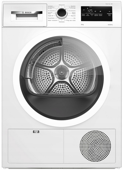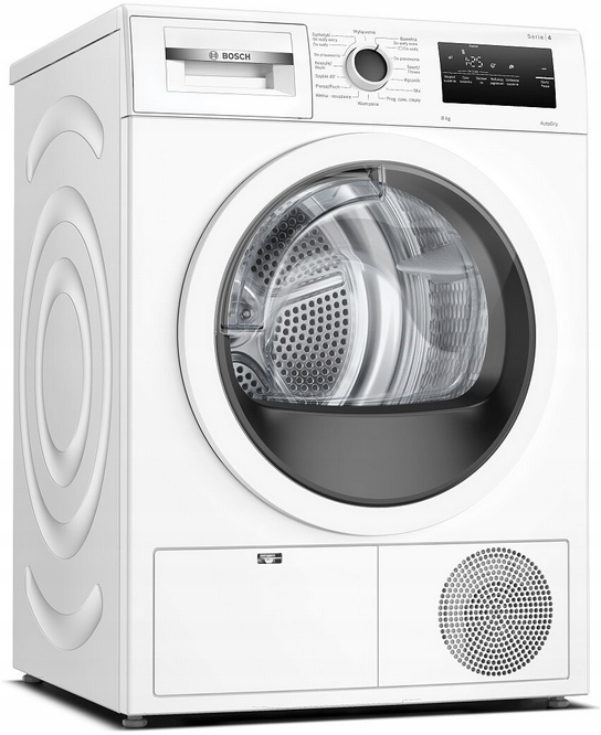 - Suszarka Bosch WTH85V1GPL (Seria 4, 8kg, Pompa ciepła, technologia AutoDry, możliwość podłączenia do kanalizacji, 15 programów, klasa energetycza A++)