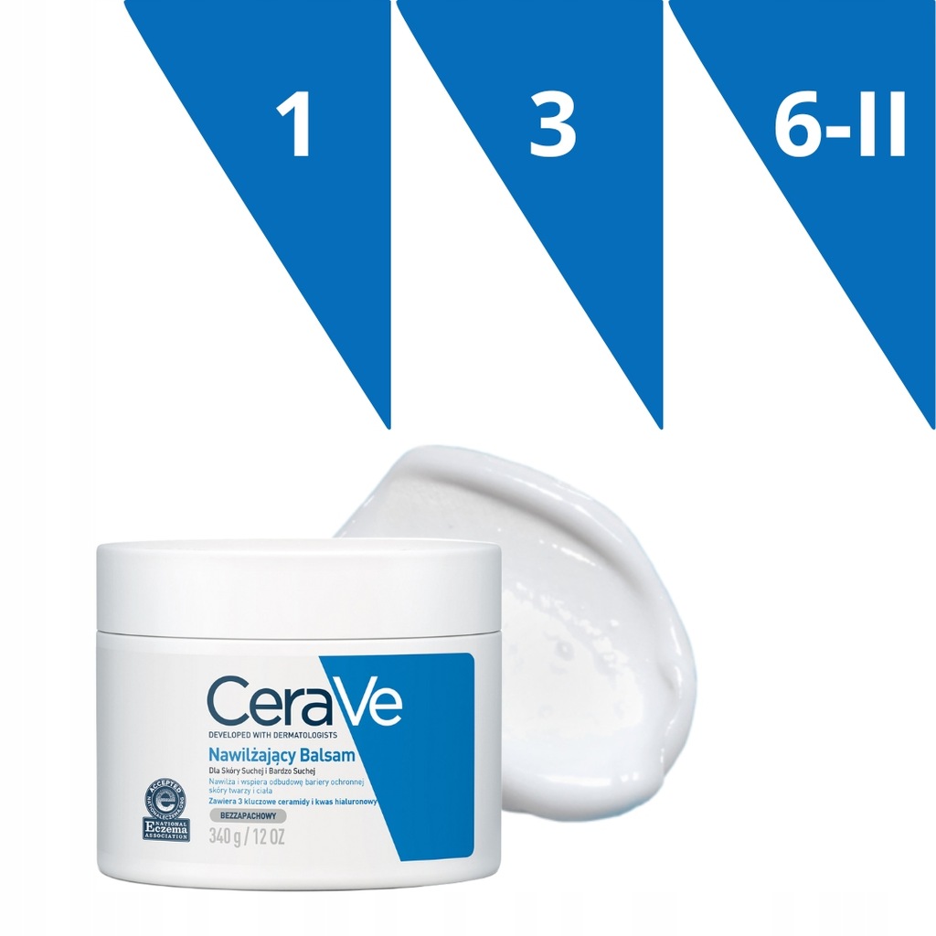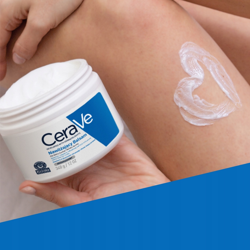 Dla uzyskania lepszego efektu - przed nałożeniem balsamu, umyj ciało i twarz używając Nawilżającej Emulsji do Mycia CeraVe, która wspiera odbudowę bariery ochronnej skóry.