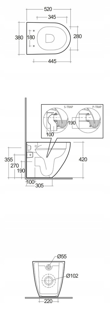 Zestaw DES Miska WC stojąca 52 Rimless i Deska WC