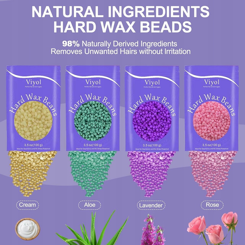 Twarde kulki woskowe: Zawiera kulki woskowe lawendowe do męskich włosów na twarzy, brody i brwi, kulki woskowe rumiankowe do wrażliwych okolic bikini oraz kulki woskowe aloesowe do stosowania na całym ciele. Te ukierunkowane kulki woskowe dostosowane do różnych typów skóry i obszarów usuwania włosów zapewniają delikatne, ale skuteczne usuwanie włosów. Nadają się do wszystkich rodzajów włosów, dzięki czemu są idealnym zestawem do woskowania ciała i nóg dla kobiet.