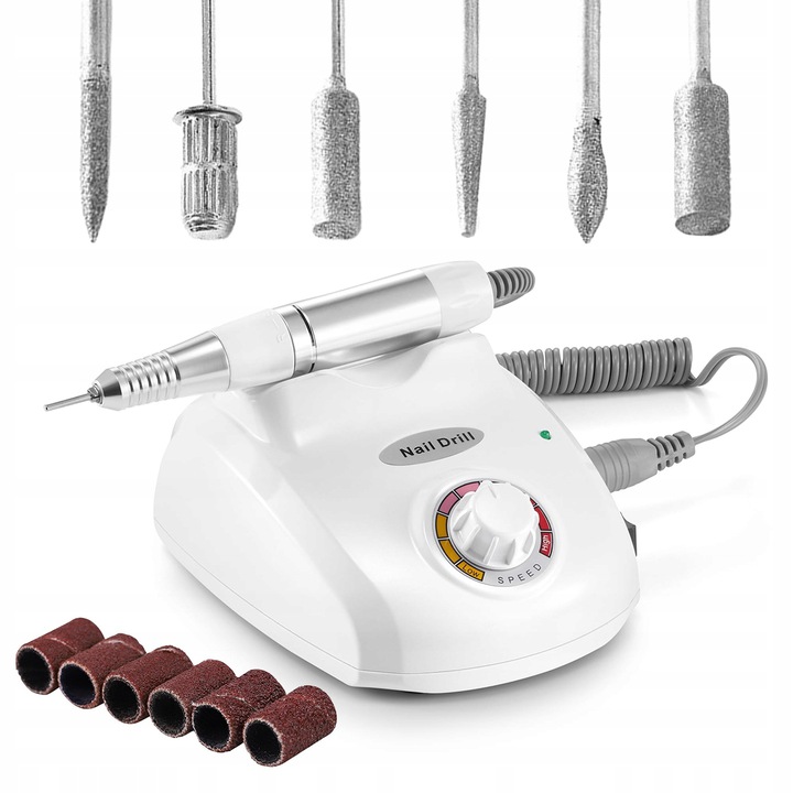 Profesjonalna frezarka o ogromnej mocy 40W do manicure i pedicure, z płynną regulacją prędkości do 35 000 obrotów na minutę.