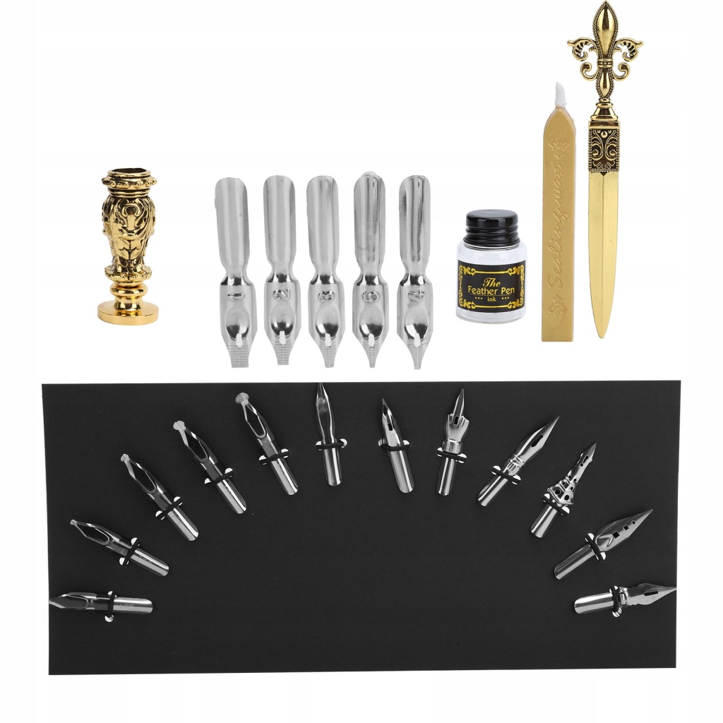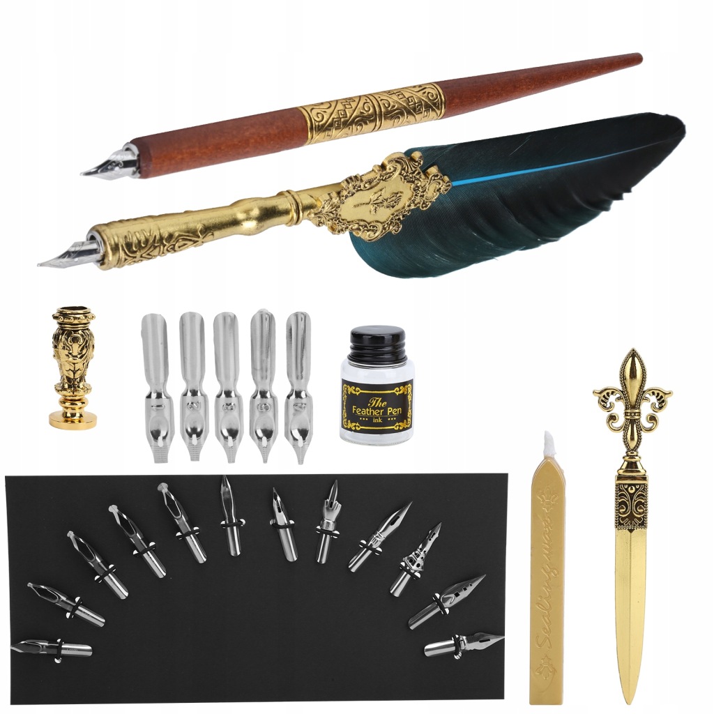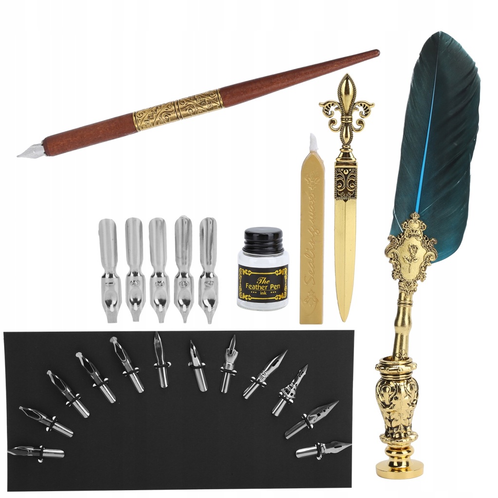 . ZESTAW DO KALIGRAFII PIÓRO RETRO TUSZ WOSK PIECZ
