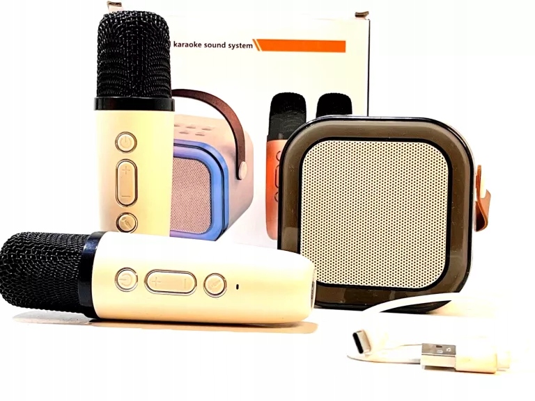 Dwuczęściowy, bezprzewodowy zestaw do karaoke mikrofon + głośnik. To świetlne źródło rozrywki i towarzysz imprez.