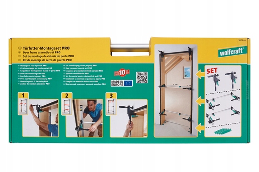 - 2 rozpieraki do montażu ościeżnic drzwiowych PRO, 2 ściski narożne do montażu ościeżnic drzwiowych PRO, 4 podkładki wyrównujące oraz instrukcja obsługi do precyzyjnego montażu ościeżnicy drzwiowej w kilku prostych krokach