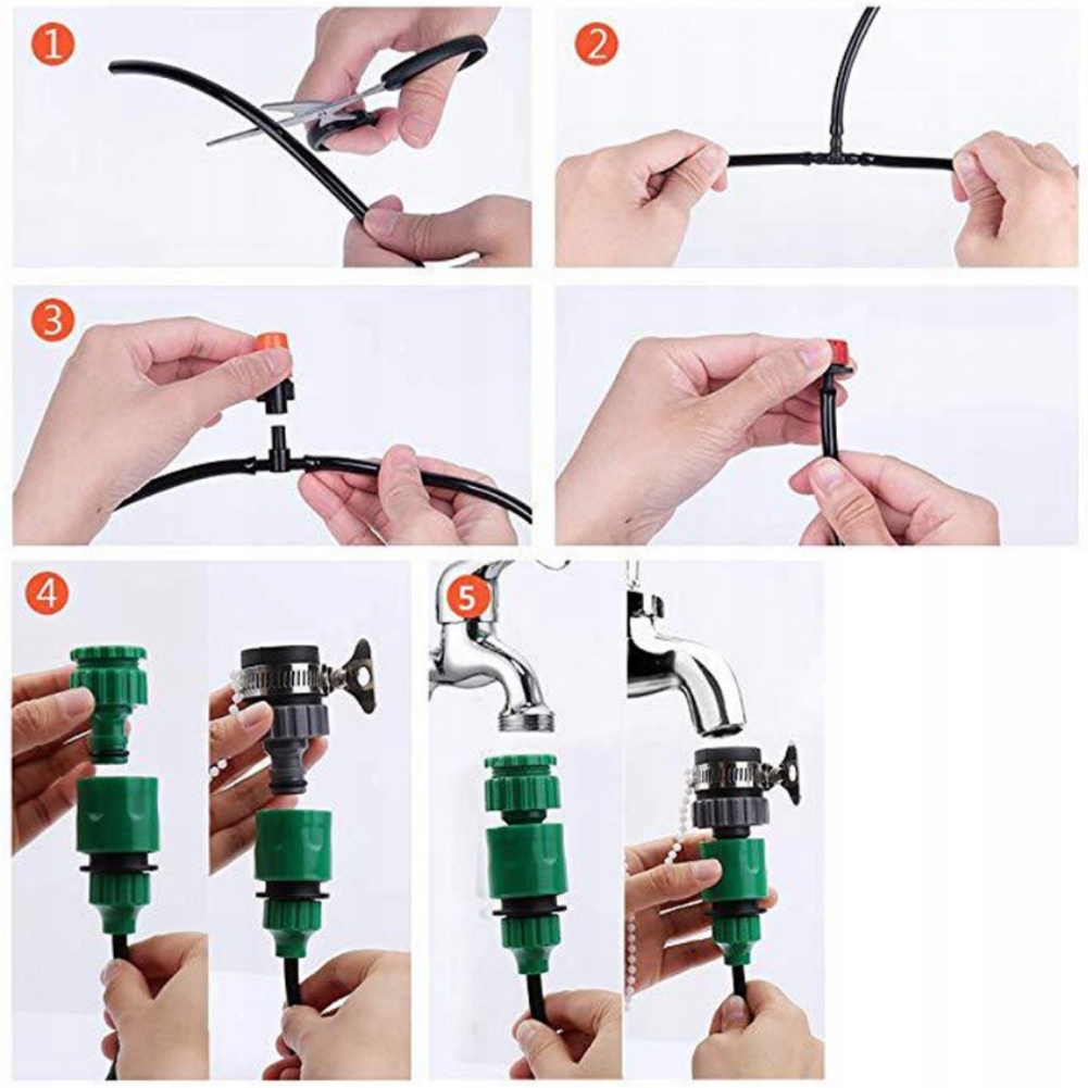2. Idealny do dowolnej aranżacji roślin, bez użycia narzędzi, podłączany do standardowego kranu z wodą lub węża ogrodowego.