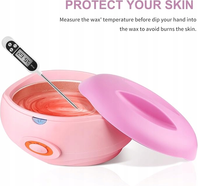- Przygotuj skórę: Poczekaj, aż wosk osiągnie temperaturę zabiegową (ok. 60°C). W tym czasie nałóż na skórę odżywczy krem lub maskę.