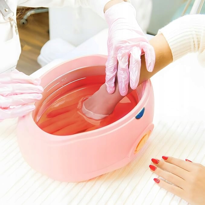 - Zanurz i zrelaksuj się: Kilkukrotnie zanurz dłoń lub stopę w parafinie, nałóż rękawiczkę foliową i ciepłą rękawicę frotte, aby utrzymać ciepło. Po 15-20 minutach zdejmij parafinę i ciesz się gładką skórą!