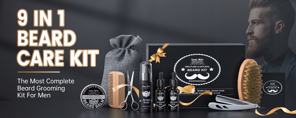 ISNER MILE zestaw do pielęgnacji brody dla mężczyzn 9 sztuk