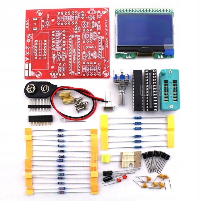 Zestaw do testowania i rozpoznawania elementów elektronicznych takich, jak tranzystory bipolarne PNP, NPN, tranzystory MOSFET z kanałem P i N, tranzystory polowe JFET oraz diody. Posiada generator sygnału prostokątnego, generator PWM oraz miernik częstotliwości. Wbudowany ekran pozwala wyświetlać charakterystyczne wartości dla danego elementu. Zestaw do samodzielnego montażu.