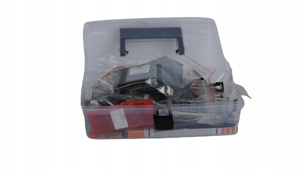 W skład zestawu wchodzi płytka Uno R3 klon, która jest jedną z najbardziej popularnych na rynku. Wyposażona jest w wiele pinów wejścia/wyjścia, co umożliwia łatwe podłączanie różnych czujników i dodatkowych rozszerzeń, tzw. shieldów. Ponadto, w zestawie znajduje się wiele różnych komponentów, takich jak np. diody LED, rezystory, czujnik ruchu, dźwięku czy temperatury, które pozwolą Tobie tworzyć różnorodne projekty.