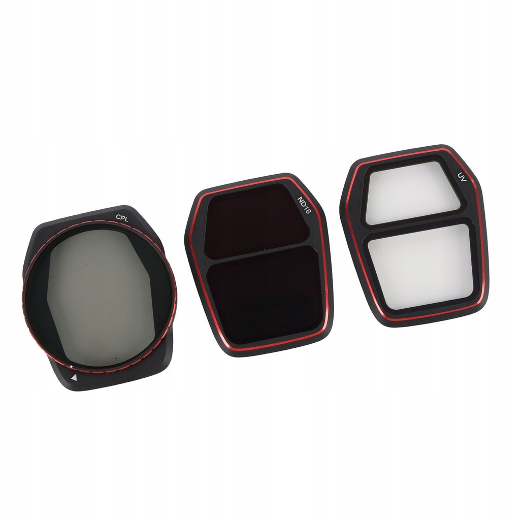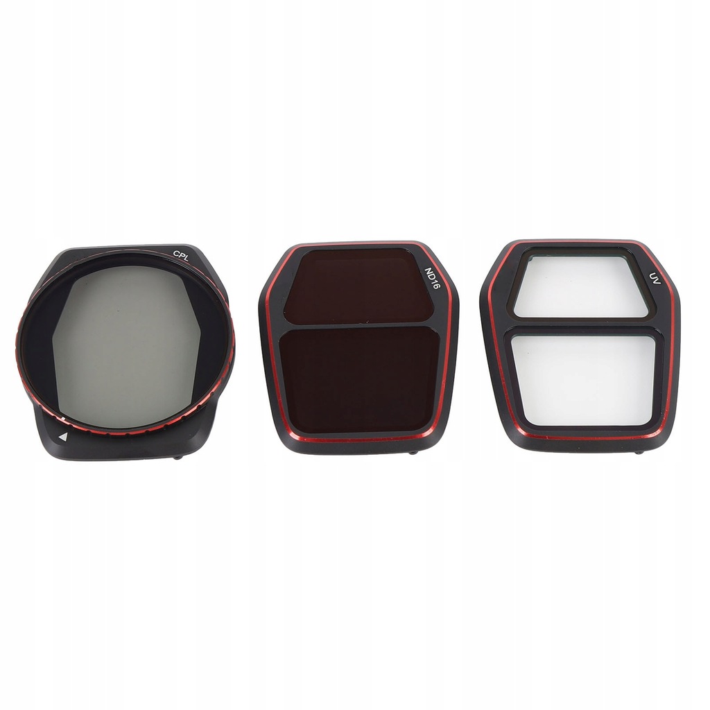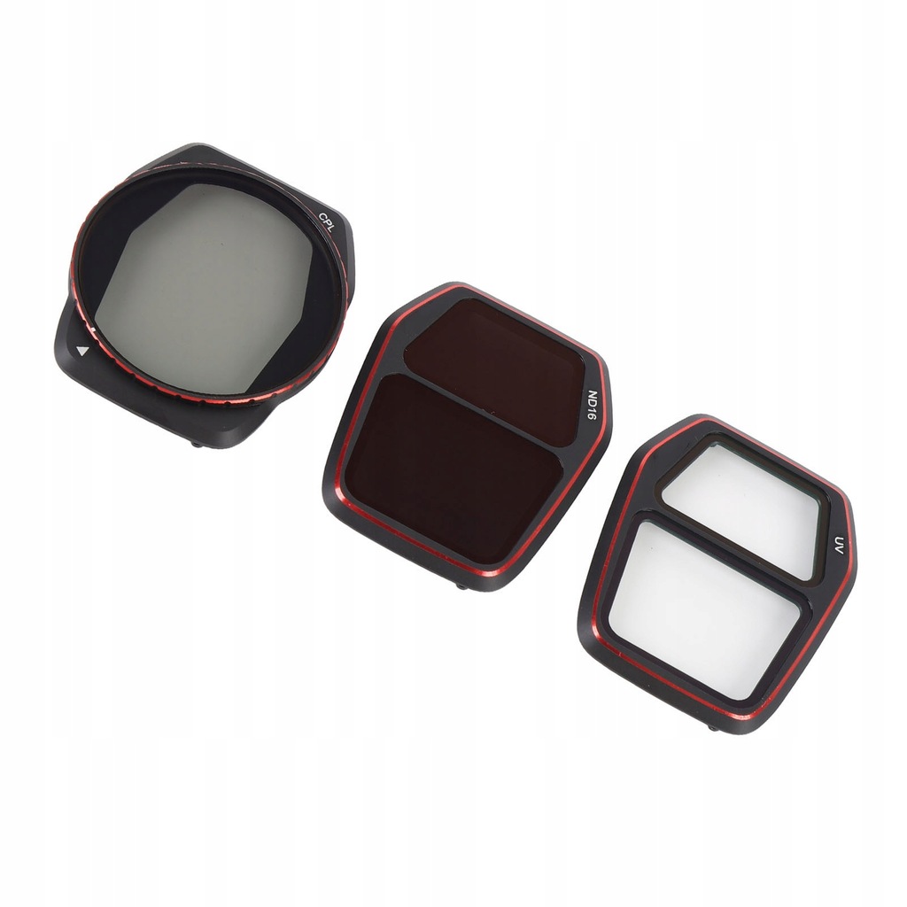 2. Zestaw filtrów UV CPL ND: Filtr ND16 skutecznie zapobiega prześwietleniu i podnosi jakość obrazu. Filtr CPL pomaga zredukować niepożądane odbicia od powierzchni, co poprawi kolor i wyrazistość zdjęć lotniczych. Filtr UV chroni obiektyw przed zarysowaniami, kurzem i szkodliwym promieniowaniem UV, dzięki czemu obrazy są ostrzejsze i bardziej urzekające.