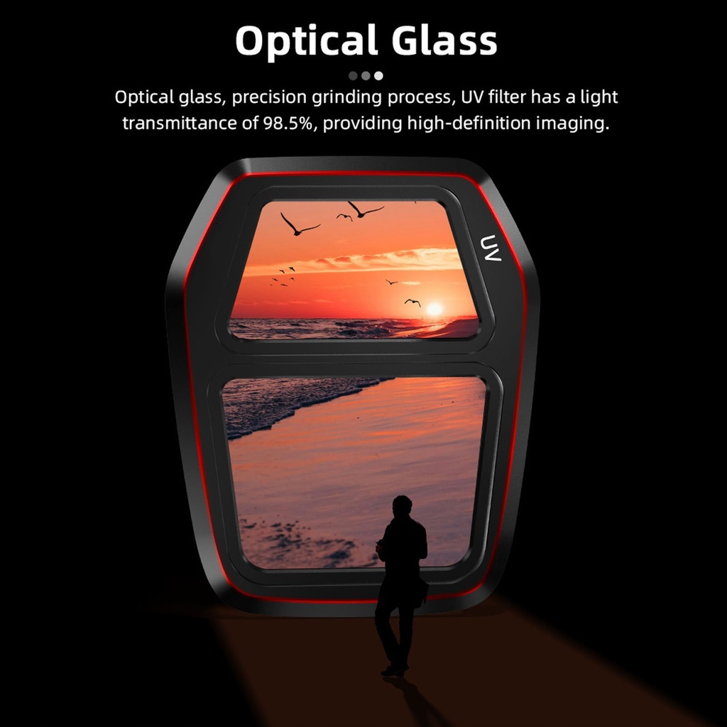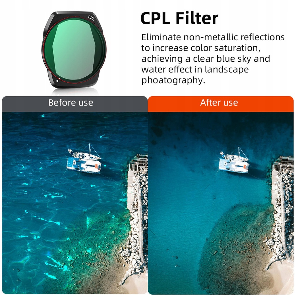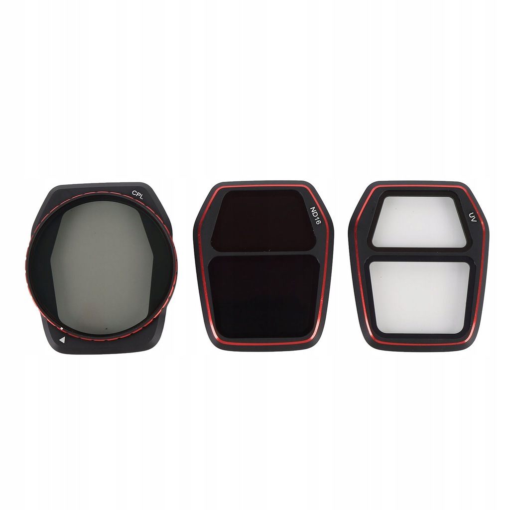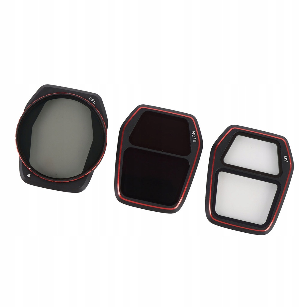 2. Zestaw filtrów UV CPL ND: Filtr ND16 skutecznie zapobiega prześwietleniu i podnosi jakość obrazu. Filtr CPL pomaga zredukować niepożądane odbicia od powierzchni, co poprawi kolor i wyrazistość zdjęć lotniczych. Filtr UV chroni obiektyw przed zarysowaniami, kurzem i szkodliwym promieniowaniem UV, dzięki czemu obrazy są ostrzejsze i bardziej urzekające.