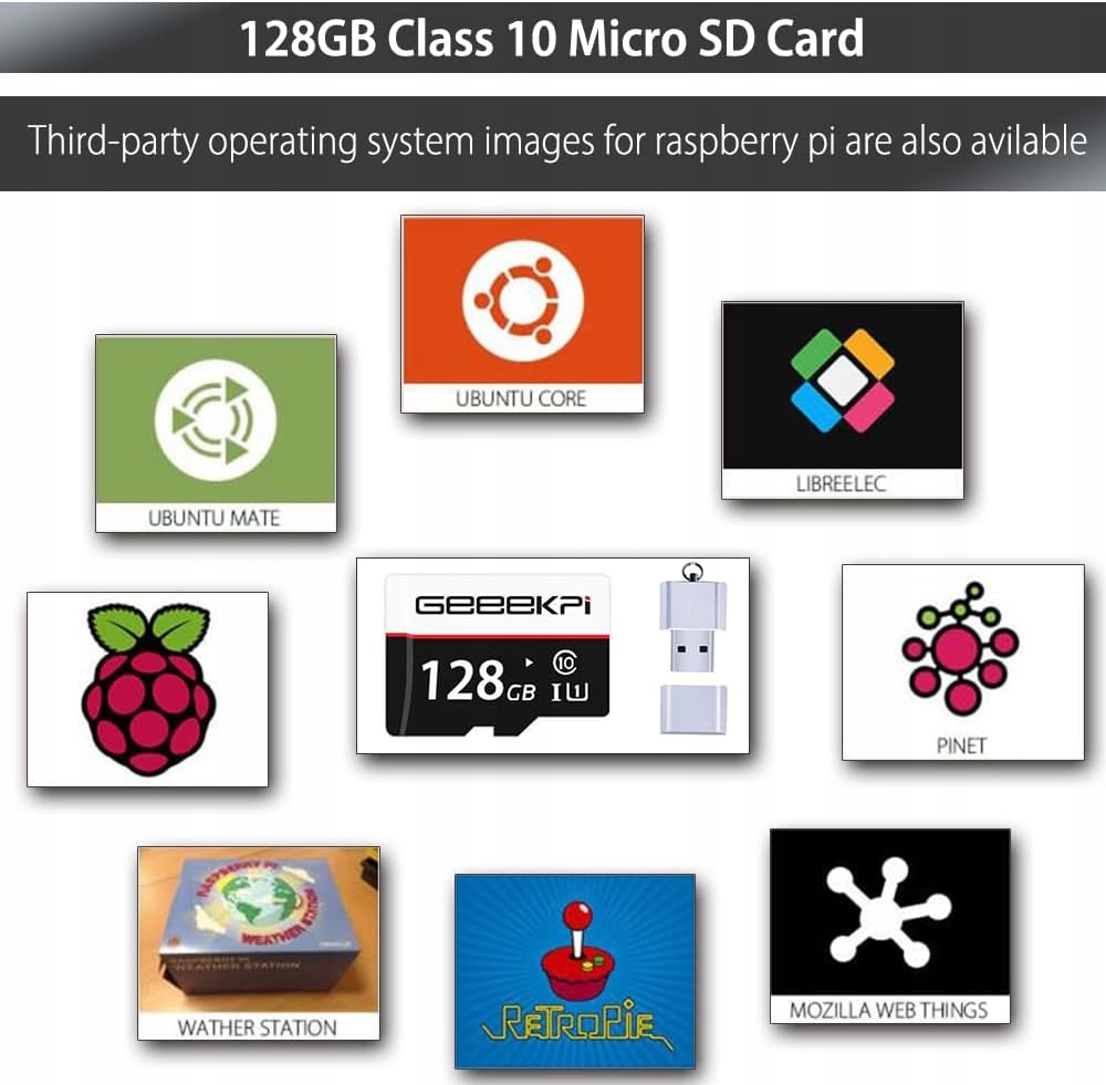 Zestaw GeeekPi Raspberry Pi 4 8 GB RAM z kartą SD 128 GB i aluminiową obudową chłodzącą