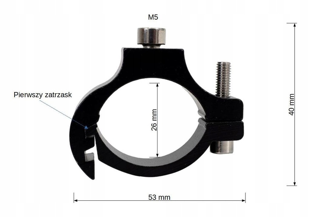Wysokiej jakości uchwyt do zamocowania lampy, halogenu na rurę od średnicy 25 mm do 36 mm.