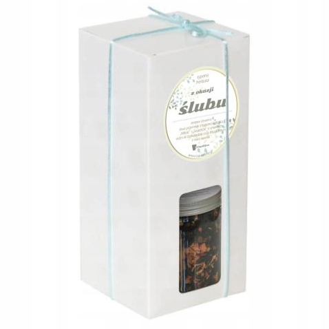 Zestaw herbat Miłość i Szczęście to kompozycja dwóch pojemników z mieszankami na bazie czarnej herbaty. Świetnie sprawdzi się jako upominek dla nowożeńców lub też jako dodatek do przysłowiowej „koperty” na 20, 30, 40, czy 50 rocznicę ślubu. Jeszcze do niedawna to kwiaty spełniały zadanie klasycznego prezentu, jednak coraz częściej zastępuje się tradycyjne podarunki tymi bardziej praktycznymi. Zestaw herbat zachęci zarówno młodą, jak i bardziej doświadczoną parę do wspólnego rytuału picia tego napoju.