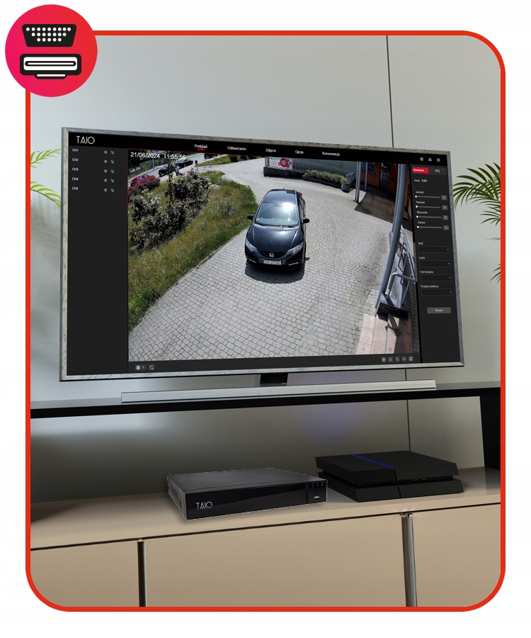 Ciesz się łatwym i wygodnym przeglądaniem obrazu z kamer TAIO na dużym ekranie dzięki elastycznym opcjom podłączenia HDMI i VGA!