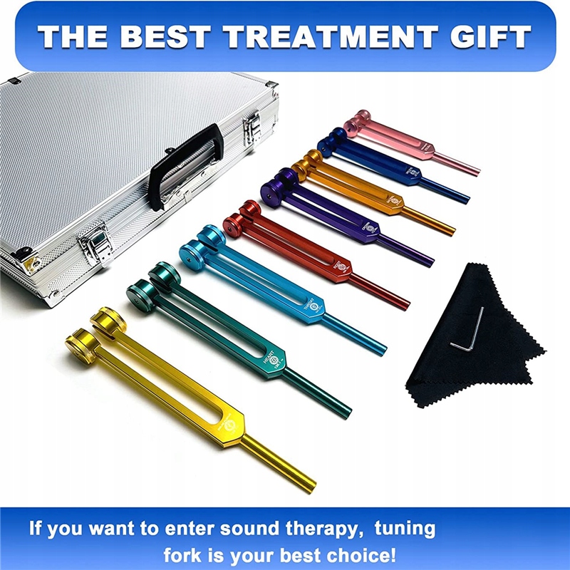 Zestaw kamertonów czakralnych o eleganckim wyglądzie i przemyślanym wzornictwie, to świetny prezent na Walentynki, Dzień Ojca, ukończenie szkoły, urodziny, awans, wakacje itp. Przyniesie czysty i przyjemny dźwięk wszystkim Twoim rodzinom, nawet Twoim słodkim zwierzakom.