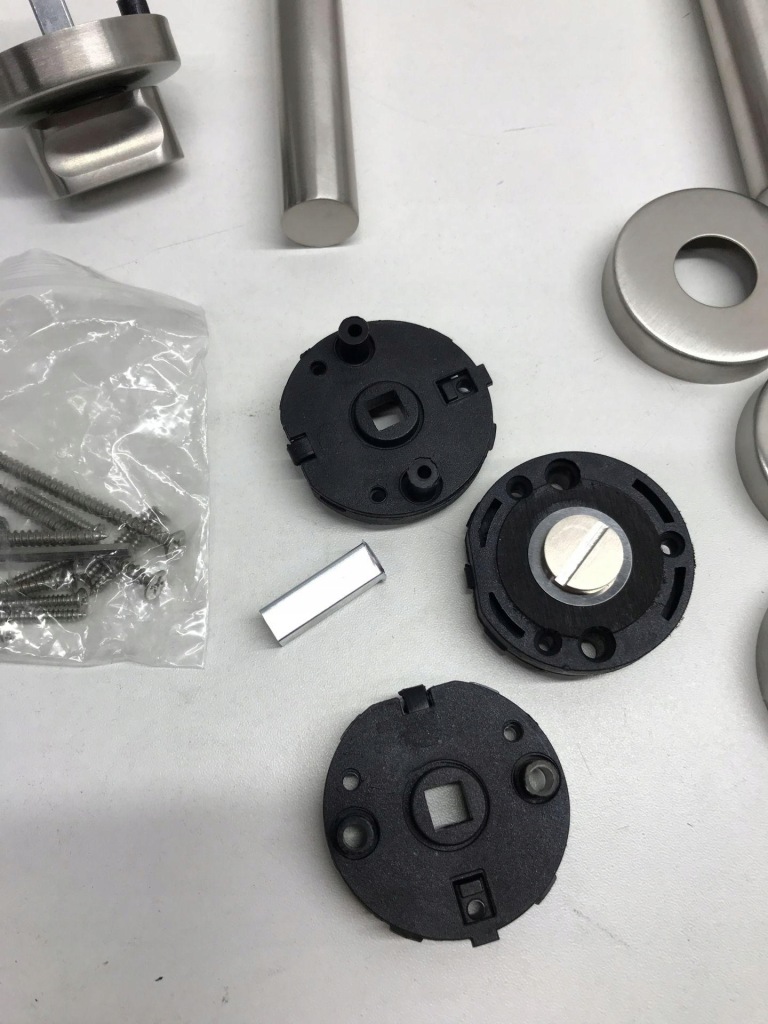 Do drzwi wewnętrznych od 38 - 45 mm // Wymaga zamka wpuszczanego przygotowanego do zestawów toaletowych z kwadratowymi otworami 8 mm pod pokrętło