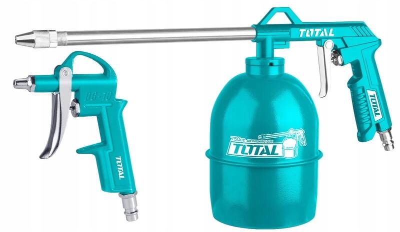 - Zestaw zawiera: wąż spiralny na powietrze, pistolet do przedmuchiwania, mycia i natryskiwania oraz pompka do opon