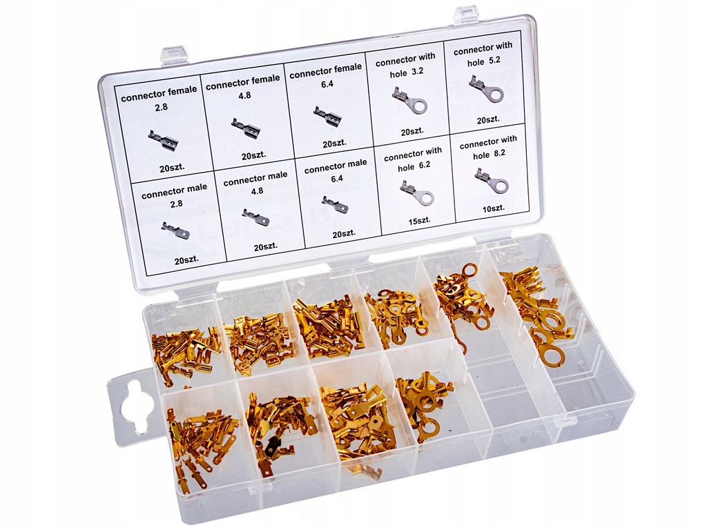 Konektory zapakowane są w poręczne pudełko typu sortownik.
